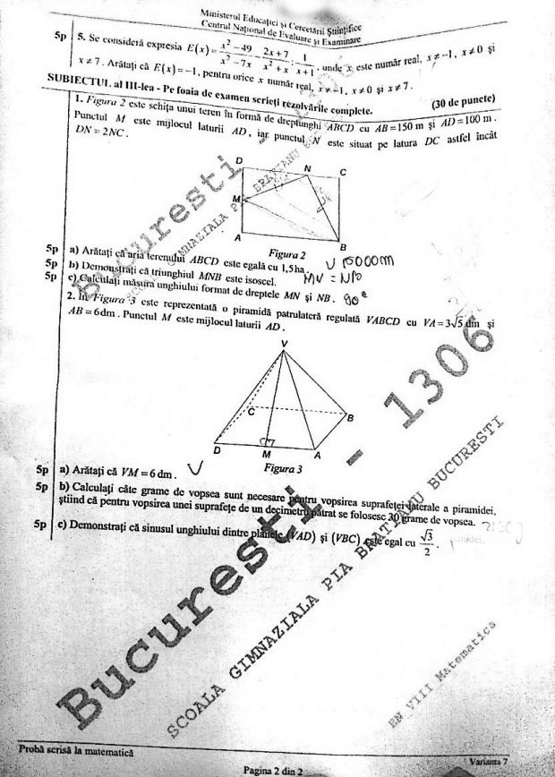 evaluare nationala subiecte matematica, evaluare nationala 2015