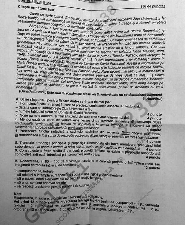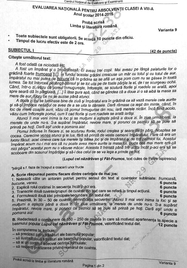 UPDATE: Elevii care au susţinut examenul de Evaluare Naţională 2015 la limba română, au avut de scris despre BASM.